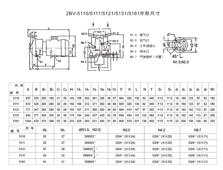 2BVA5111水環(huán)真空泵適用于抽除氣體和水蒸氣吸氣壓力可以達到33mbar絕壓(97%真空度)。當水環(huán)真空泵在吸氣壓力接近極限真空(工作液和蒸汽壓),下長期工作時,應(yīng)聯(lián)接汽蝕保護管,以對泵進行保護。作為壓縮機用時,其壓力最大至0.26Mpo(絕壓)。2BV系列水環(huán)真空泵作為新一代節(jié)能型產(chǎn)品,其出色的性能及眾多優(yōu)點將全面取代同性能的SK、2SK系列水環(huán)真空泵及W、WY、WL系列往復(fù)真空泵。
